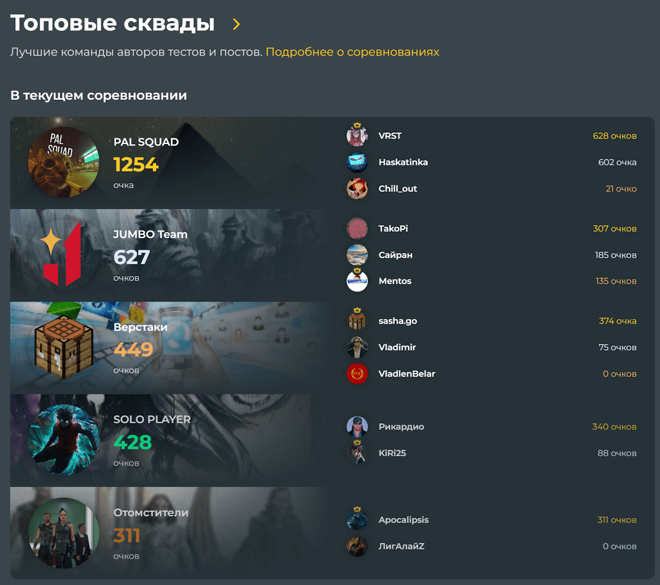 Каждый месяц на сайте проходят командные соревнования для сквадов — сквад-вар.