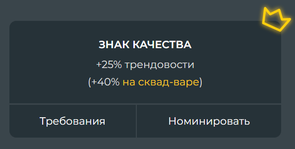 Награды «Знак Качества» и «Выбор Редакции» дают дополнительный бонус к продвижению работ, опубликованных для участия в сквад-варе. Даже если вы не стремитесь занять призовые места, использовать эту возможность всё равно выгодно.
